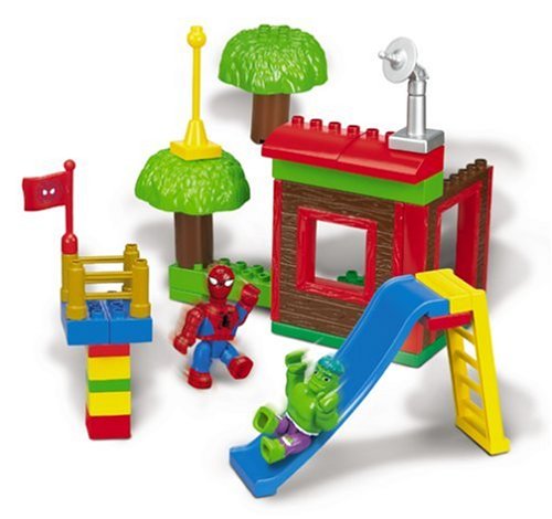 This mini-block playset features kid-friendly Marvel characters and easy building pieces. Larger pieces, simple instructions and multiple play patterns offer fast building and fast rewards for children. The mini-system breeds confidence and a bridge to micro construction toys. Spider-Man and Friends are superhero characters with a community/cooperative message in a town setting. Includes 31 Meg More Detail